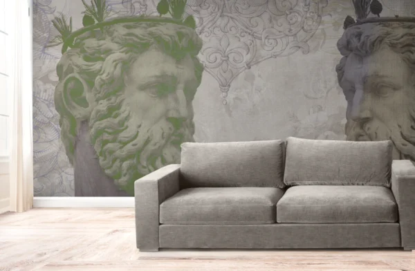 Elevate your interiors with the Gallery of Titans Wall Mural, a powerful fusion of classical sculpture art and contemporary design aesthetics. Featuring two monumental Greco-Roman busts facing one another, this mural evokes the grandeur of ancient galleries while introducing a modern, curated visual narrative.
