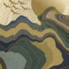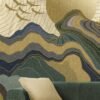 Inspired by Japanese and contemporary abstract art, the mural features layered tones of gold, sand, deep blue, olive green, and muted charcoal. Fine contour lines add texture and movement, while the linen-like surface finish enhances the artwork’s refined, handcrafted feel.