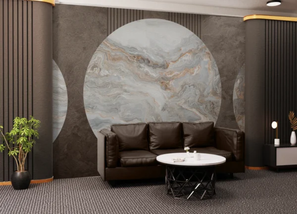 Inspired by modern architecture and luxury interiors, the soft grey, beige, and subtle gold marble veining adds depth without overpowering the space. The circular composition draws the eye while maintaining harmony, making it ideal for contemporary living rooms, lounges, offices, and upscale commercial environments.