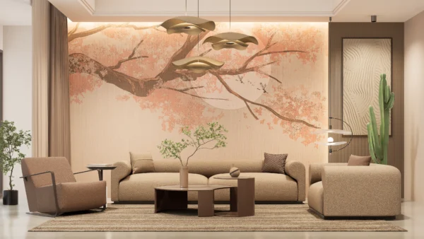 Create a serene and elegant atmosphere with this Under the Cherry Blossom Wall Mural. Featuring delicate floral branches and soft earthy tones, it brings timeless oriental beauty into luxury interiors.